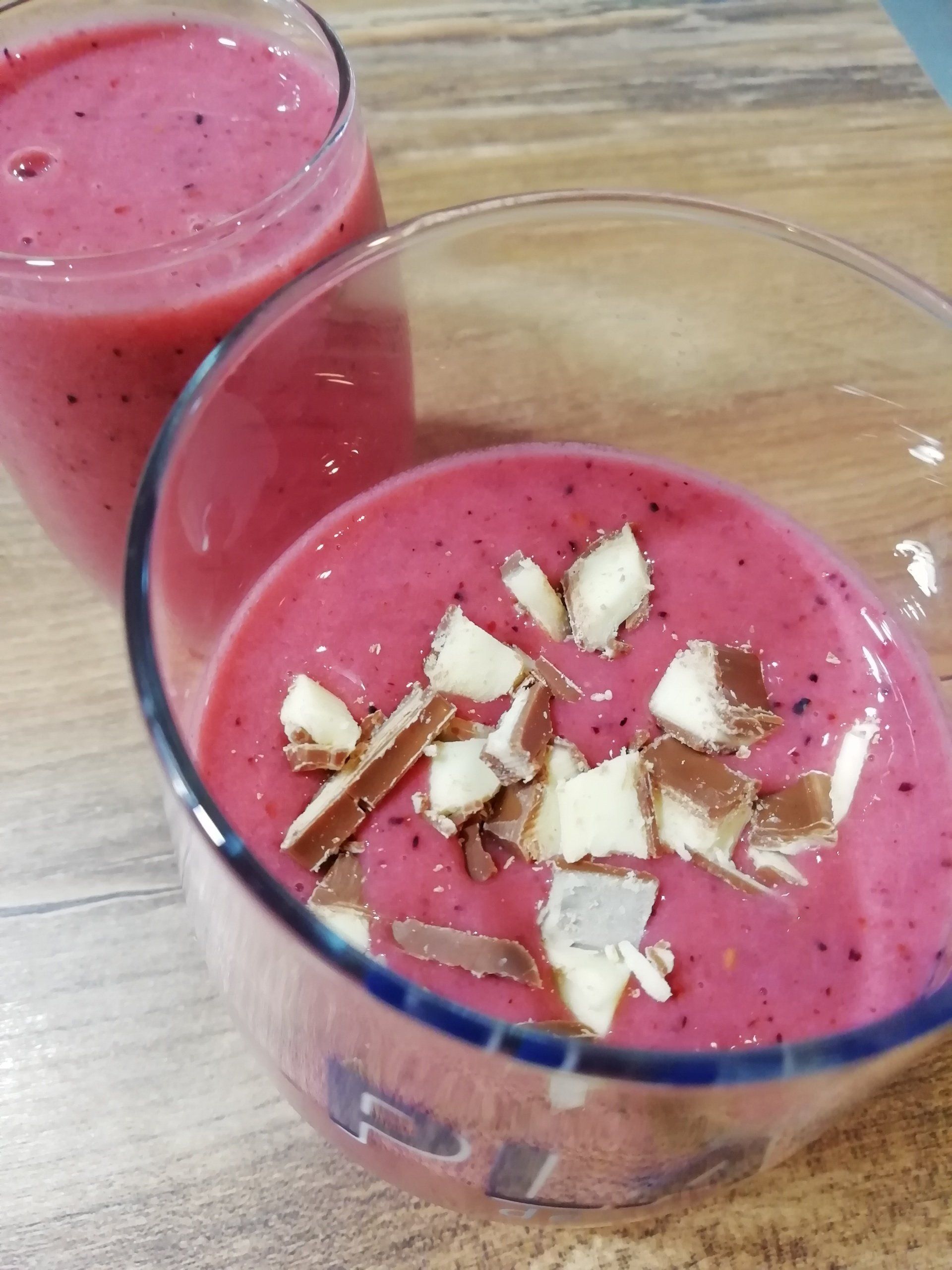Envie de partager avec vous couleurs et fraîcheur ! Voici quelques idées de recettes au blender : -smoothie: fruits rouges (surgelés) + poire + lait d'amande + glaçons -smoothie: kiwi +banane + yaourt brassé blanc + glaçons -smoothie: mangue (fraîche ou surgelée) + poire + banane + jus de pommes bio + glaçons -smoothie: fraise + banane + lait + glaçons Vous remarquerez qu'il n'y a pas de sucre ajouté, mais vous pouvez apporter 1 cuillère à café de miel. Et sur mes photos: la version light et la version améliorée pour les gourmands (les enfants par exemple!). Les proportions: à votre convenance ! Bonne dégustation !