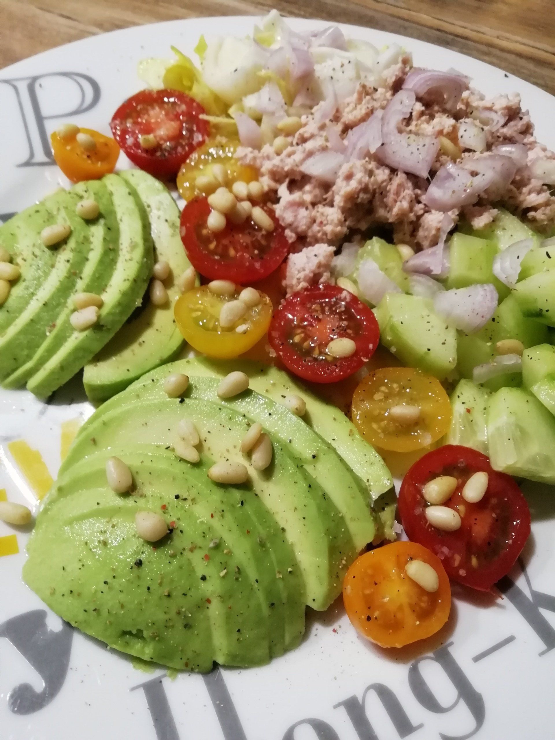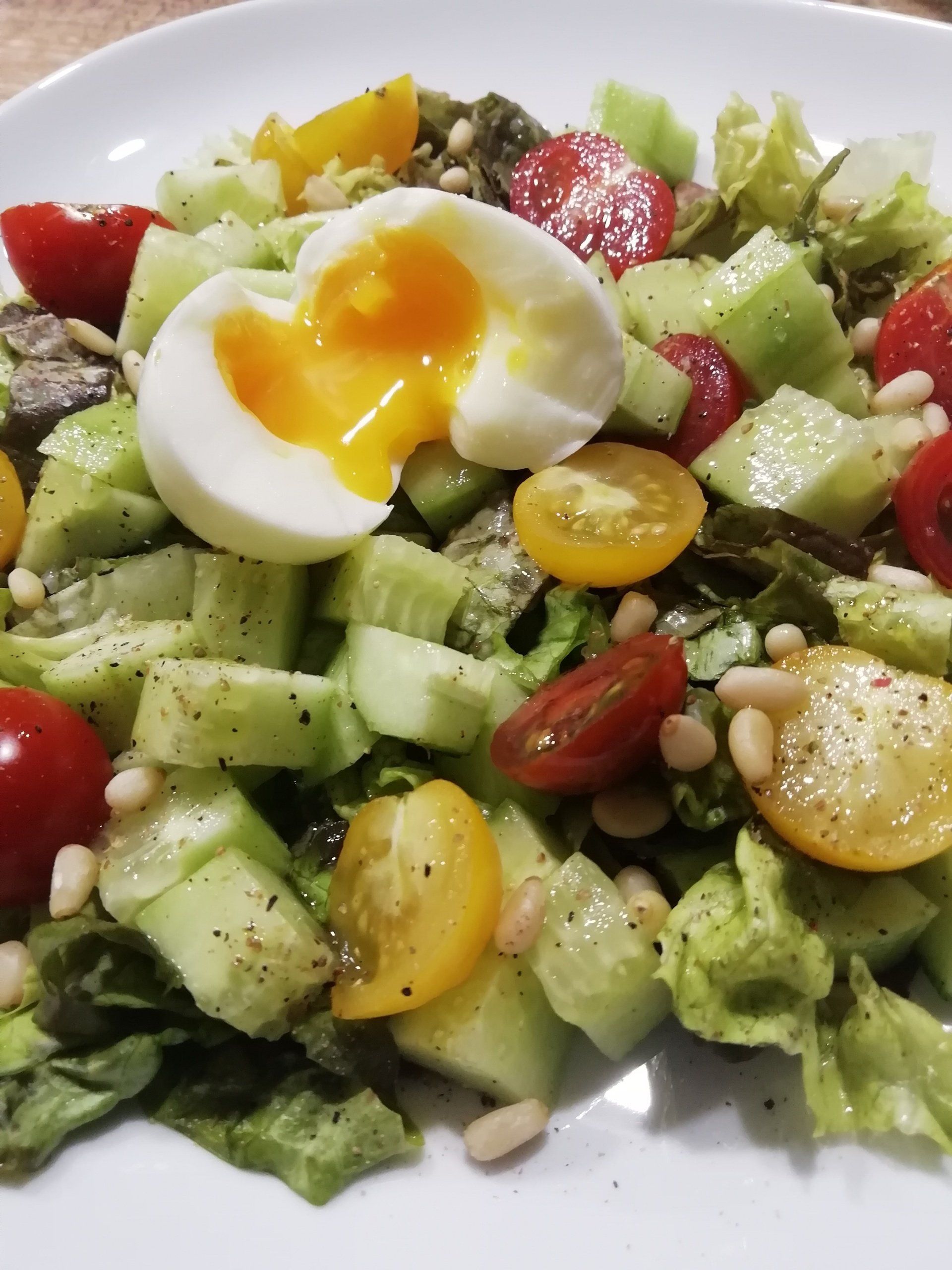 Envie d'une salade ? Très bonne idée ! En été comme en hiver c'est possible (en suivant les saisons dès que l'on peut) et c'est très facile de réaliser une préparation légère. Je vous conseille de choisir 1 à 2 protéines différentes: poulet, crevettes, thon, viande de grison, bacon, oeufs, fromage (attention ce dernier est plus riche)...; puis de choisir 1, 2 ou 3 légumes (et/ou fruits): tomates, concombres, poivrons, asperges, oignons, mâche, endives, avocat, radis, pamplemousse, pomme... N'hésitez pas à variez les couleurs et les textures (apportez du "croquant" avec radis, cornichons, pomme...), vous pouvez ajouter quelques graines oléagineuses ou un mélange de graines et spiruline par exemple ("mélange crudités" de spiruline de retz). Un filet d'huile d'olive et/ou colza (suivant votre régime alimentaire), un filet de vinaigre balsamique ou de cidre, et/ou un filet de citron, puis touche finale importante les herbes aromatiques: persil, ciboulette, coriandre, basilic, menthe, et le tour est joué! Bon appétit !